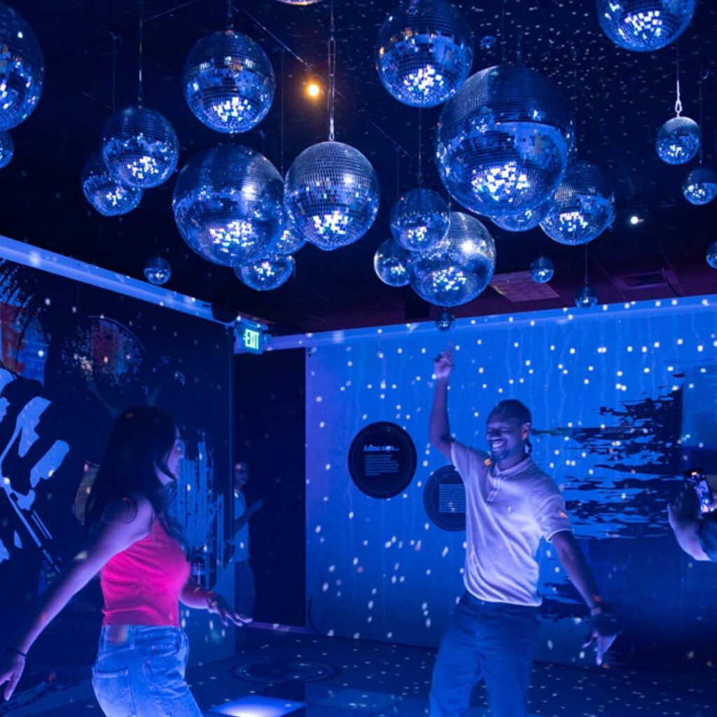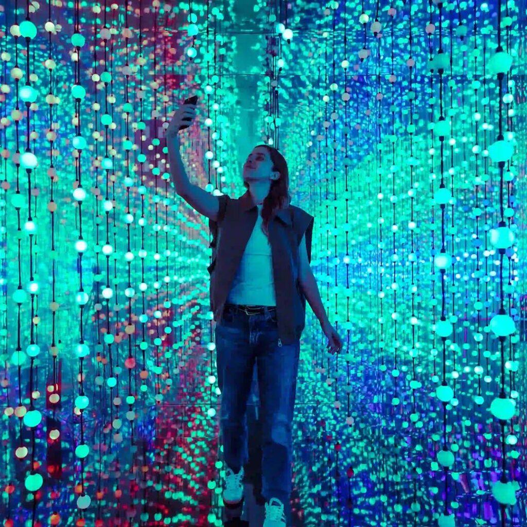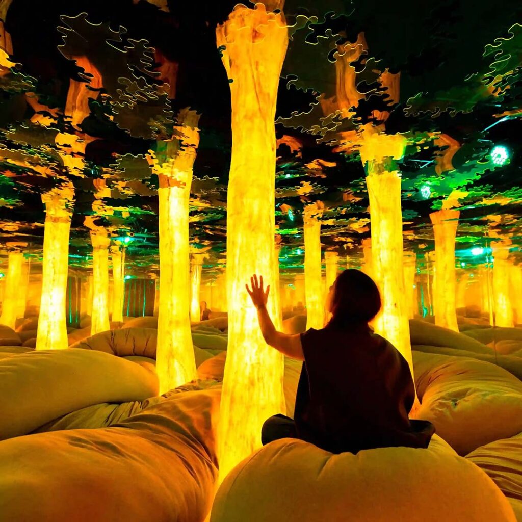 The experience unfolds through a series of themed spaces, each offering a different kind of sensory escape. Step into ‘Cosmic Oasis’, a dreamlike space filled with cascading illuminated bulbs, or wander through ‘Euphoria Grove’, a neon forest set atop a plush bed of cushions. For something a little livelier, ‘Cushion Clash’ brings out the inner child with pillow fights, while ‘Chromadance’ gets the energy flowing through a light-up dance floor that reacts to movement and music.