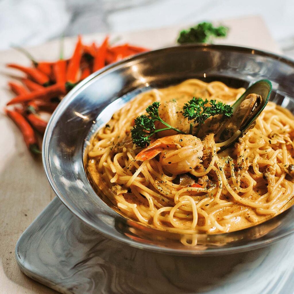 Diners at 49 Seats are invited to step into a cosy, industrial-chic space and indulge in a diverse range of budget-friendly fusion Western dishes. Crowd favourites include the legendary Tom Yum Seafood Pasta ($20.90) and the Tom Yum Salted Egg Seafood Pasta with Chicken Cutlet ($22.90), both celebrated for their bold, spicy flavours. For those not in the mood for spice, the Creamy Smoked Duck Pasta ($19.90) ranks among Singapore’s top smoked duck dishes.
