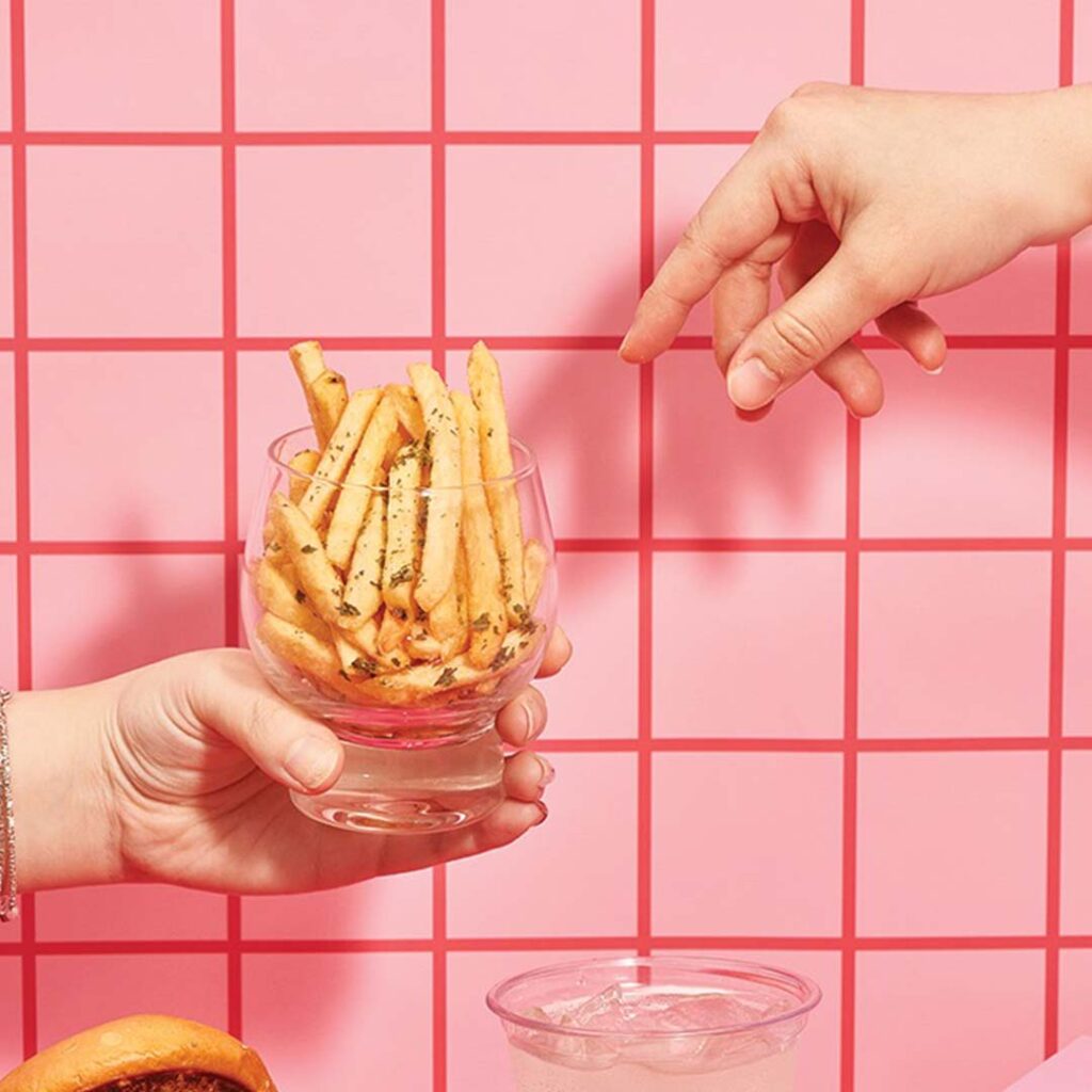 Beyond burgers, Bunny’s offers a selection of sides, sauces, and playful drinks, from crispy wings and fries to yuzu lemonade, matcha, and sparkling peach—some even topped with a sea salt ice cream float for extra indulgence. Designed as a space for experimentation and limited-time obsessions, Bunny’s leans into novelty and impermanence, encouraging diners to order freely while items last. Always pink, never permanent, and never boring.