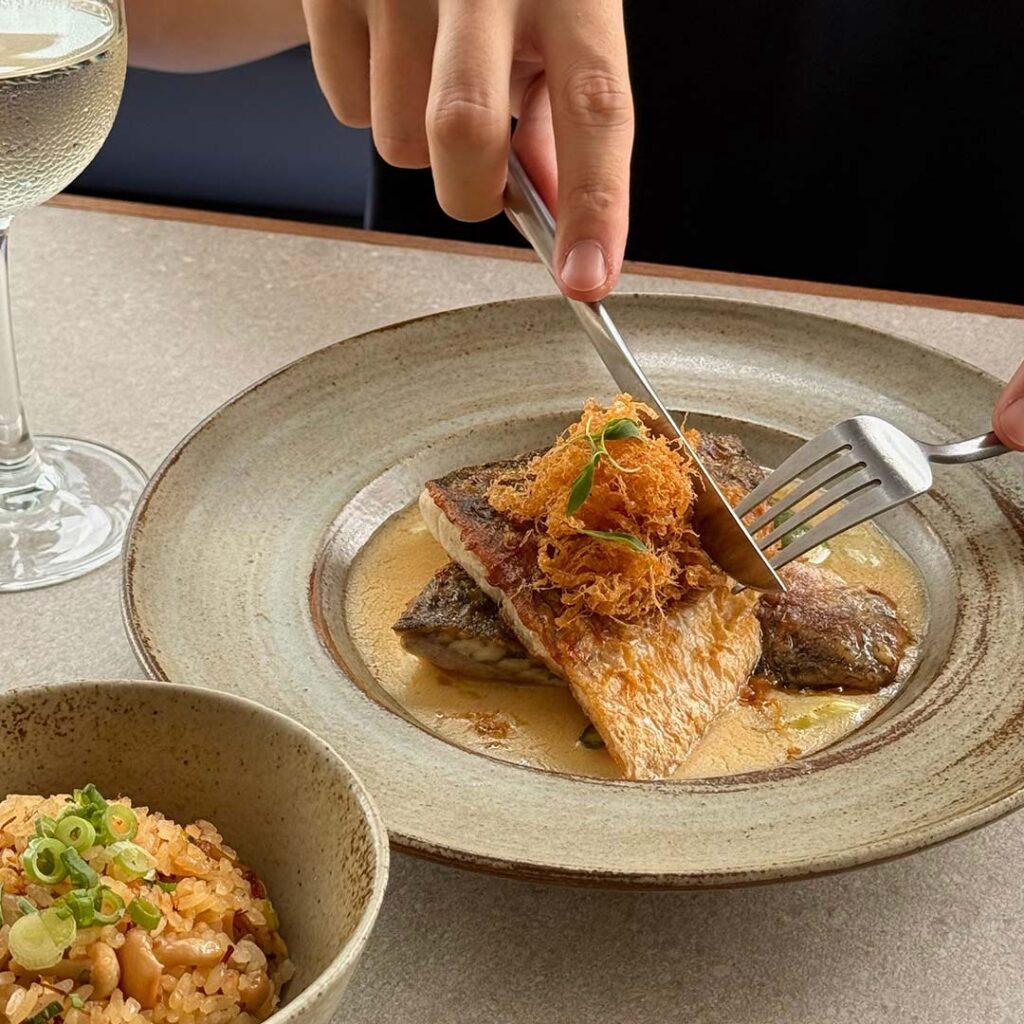 The all-day menu is shaped by Chef Jason Tan, whose fine-dining background subtly informs the café’s modern brunch identity. Brunch plates lean premium, with standouts like Hamachi Corn Fritters, Crispy Egg Salmon, and the Cloudfields Big Breakfast. For heartier appetites, the kitchen also serves pastas and mains such as Mussel Butter Aglio Olio, Rendang Pasta, Barramundi with dashi beurre blanc, and Thai Yellow Curry Crab Pasta, each elevated with careful technique and flavour balance.