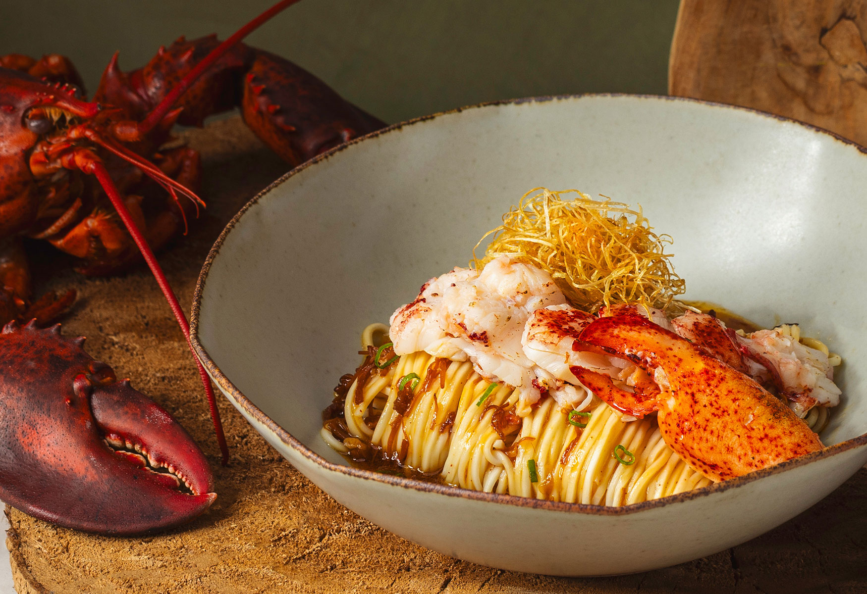 Wild-caught Boston lobster from the North Atlantic crowns a bed of springy noodles in this indulgent Premium Lobster Dry Noodle in Chef’s Seafood Sauce 龙虾干拌面佐秘制海鲜酱 ($39.80). The housemade seafood sauce mingles with a fragrant shredded scallop mixture – slow-fried with top-quality dried scallops, shrimp, and chilli – delivering rich, aromatic depth.
