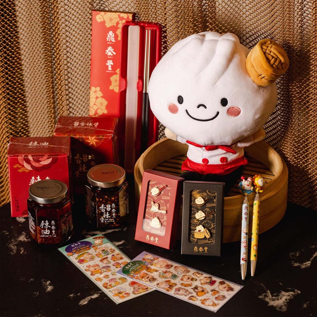A curated selection of merchandise will also be available for retail, including the popular made-in-Taiwan condiments such as Taiwan Chilli Oil 辣油 ($16) and Fragrant Chilli Sauce 豐味香辣酱 ($16), alongside Din Tai Fung’s Pineapple Cakes 鼎泰豐凤梨酥 ($32.80) and thoughtfully selected souvenirs including Din Tai Fung Chopsticks 平安筷 ($15.90), Mascot Plush Toys 包仔娃娃 ($43), and Enamel Pins 微章 ($12).