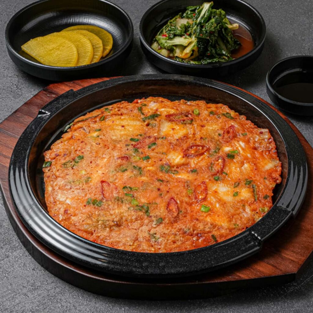 A beloved traditional Korean dish, this savoury pancake gets a wholesome twist at Mijin with buckwheat flour blended into the batter, giving it a lighter texture and nutty depth of flavour. Pan-fried to golden perfection, the pancake is crispy at the edges yet chewy within, generously packed with house-fermented kimchi and a medley of fresh seafood including shrimp, squid, clams, mussels, and fish.