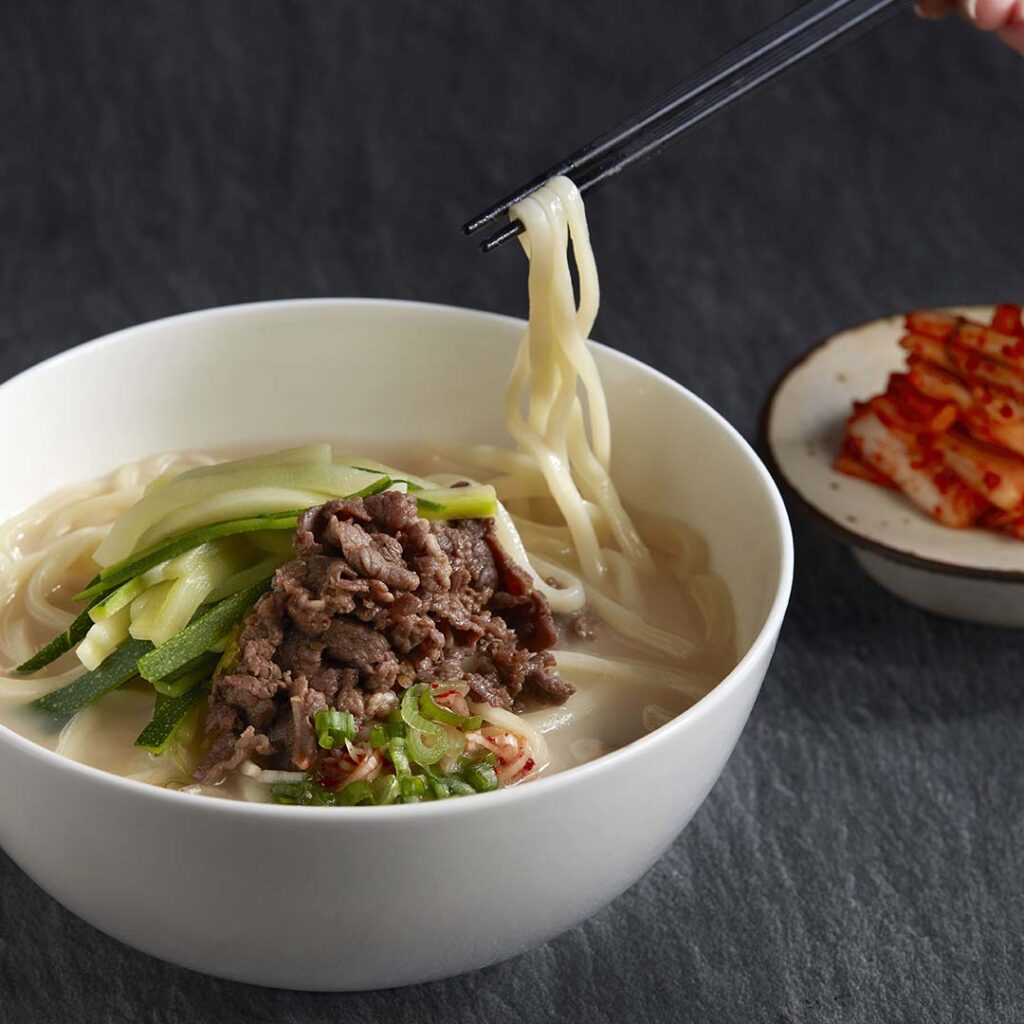 An award-winning restaurant, Gwangjang GAON’s accolades include 2025 Blue Ribbon recognition, listed in Hi Seoul Best Korean Restaurant, as well as ministerial commendation and more. Drawing long lines, regulars flock to Gwangjang GAON for heritage soul food, especially the comforting Kalguksu noodles, Gomduk (beef soup), Mandus (handmade dumplings) and classic Bibimbap – a taste of home direct from mum’s kitchen. It is precisely these time-honoured recipes that sets Gwangjang GAON apart from typical eateries dishing out contemporary K-street food here.
