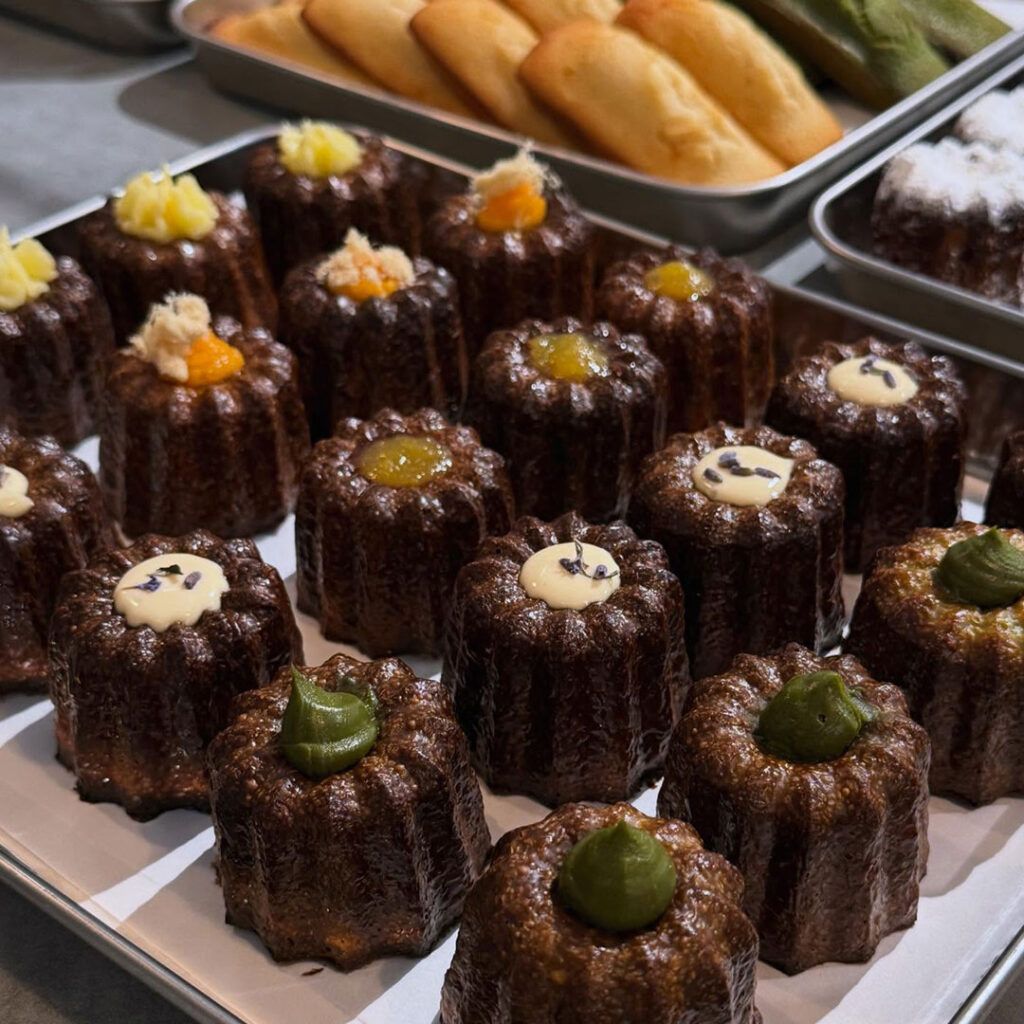 As the name suggests, canelés take centre stage here. The bakery offers a tight selection of classic and modern flavours, with favourites like salted caramel alongside seasonal variations. Each batch is baked fresh twice daily, with new trays typically ready around late morning and mid-afternoon, making timing part of the experience for those hoping to catch them at their best. The pastries keep the traditional crisp, caramelised shell and soft custardy centre, made without alcohol while still staying true to the original style.