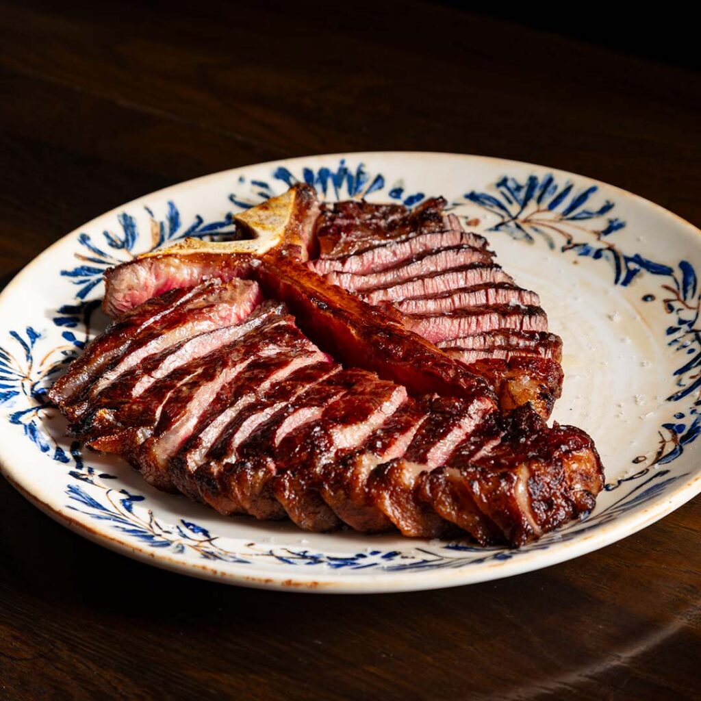 Il Toro’s interiors mirror its culinary philosophy: warm, intimate, and elemental. Guests will find dark wood panels, exposed brick walls, textured concrete finishes, leather seating, and preserved original columns. At its centre stands a solid timber chef’s counter, anchoring the room with craft and presence.