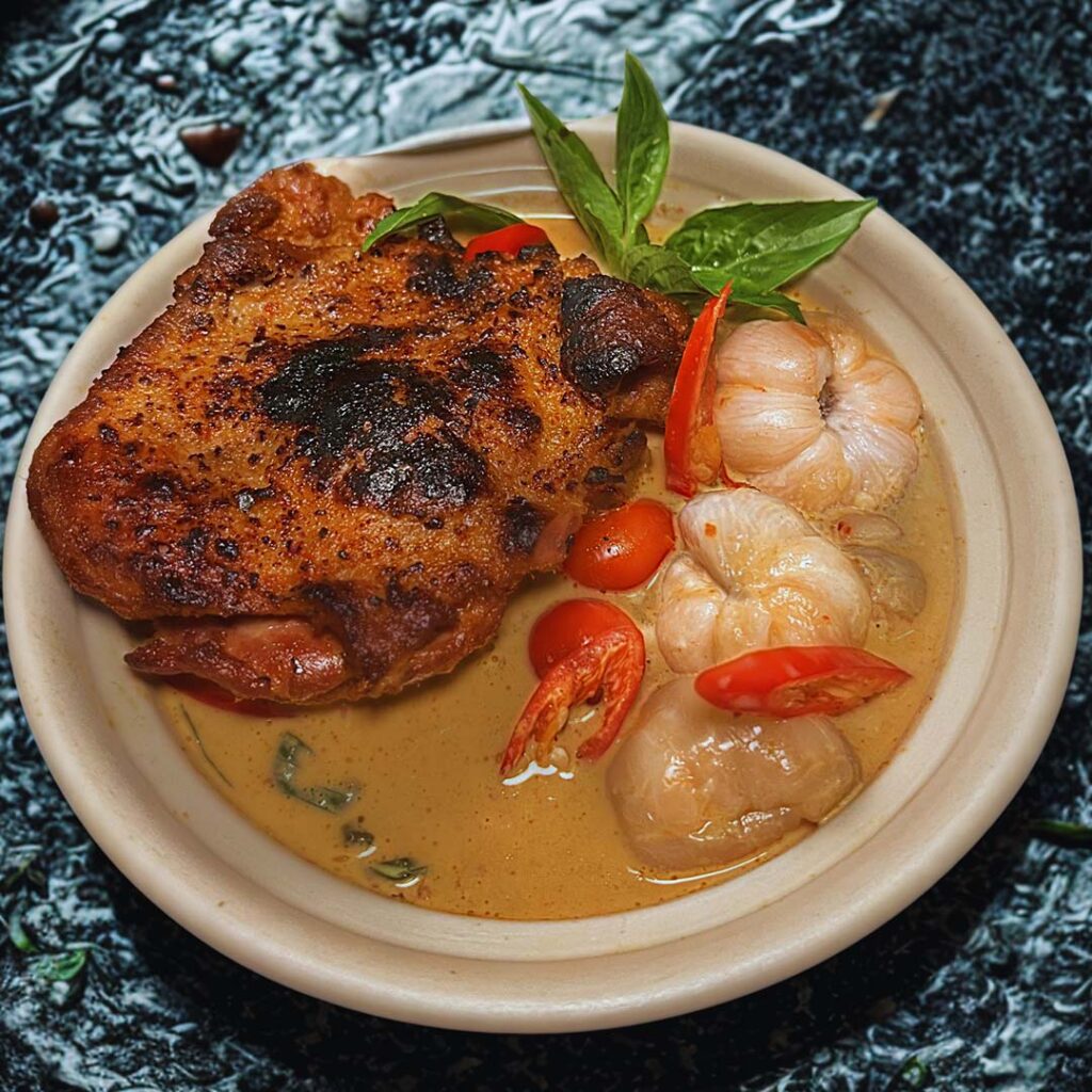 Today, Vincent’s cooking blends tradition with creativity, house-made red curry with French duck confit or wild-caught river prawns imported exclusively for IM JAI.