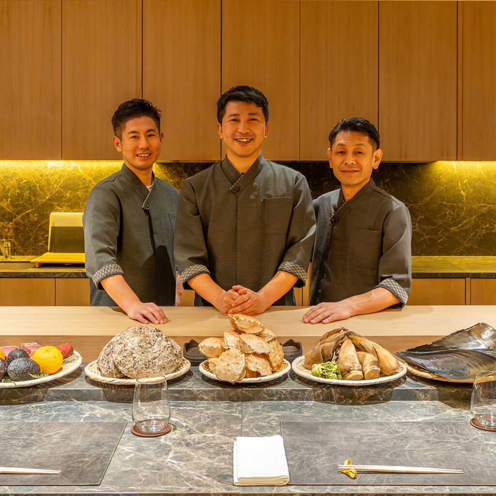 Helming the counter at Jiin is Head Chef Sakamoto Mitsutaka, under the mentorship and guidance of Group Head Chef Saito Makoto, who oversees the Japanese Collective within Les Amis Group. Together with Sous Chef Matsuda Koichi, this trio of Japanese chefs brings their combined expertise to every aspect of the kitchen. The ryokan tradition shaped the careers of chefs Sakamoto and Matsuda; with Sakamoto working in one of Japan’s most prestigious establishments, Kagaya, followed by 18 years at Hyakurakuso Ryokan. The detailed attentiveness and exacting skills forged in the ryokan informs Sakamoto’s approach to the counter at Jiin today.