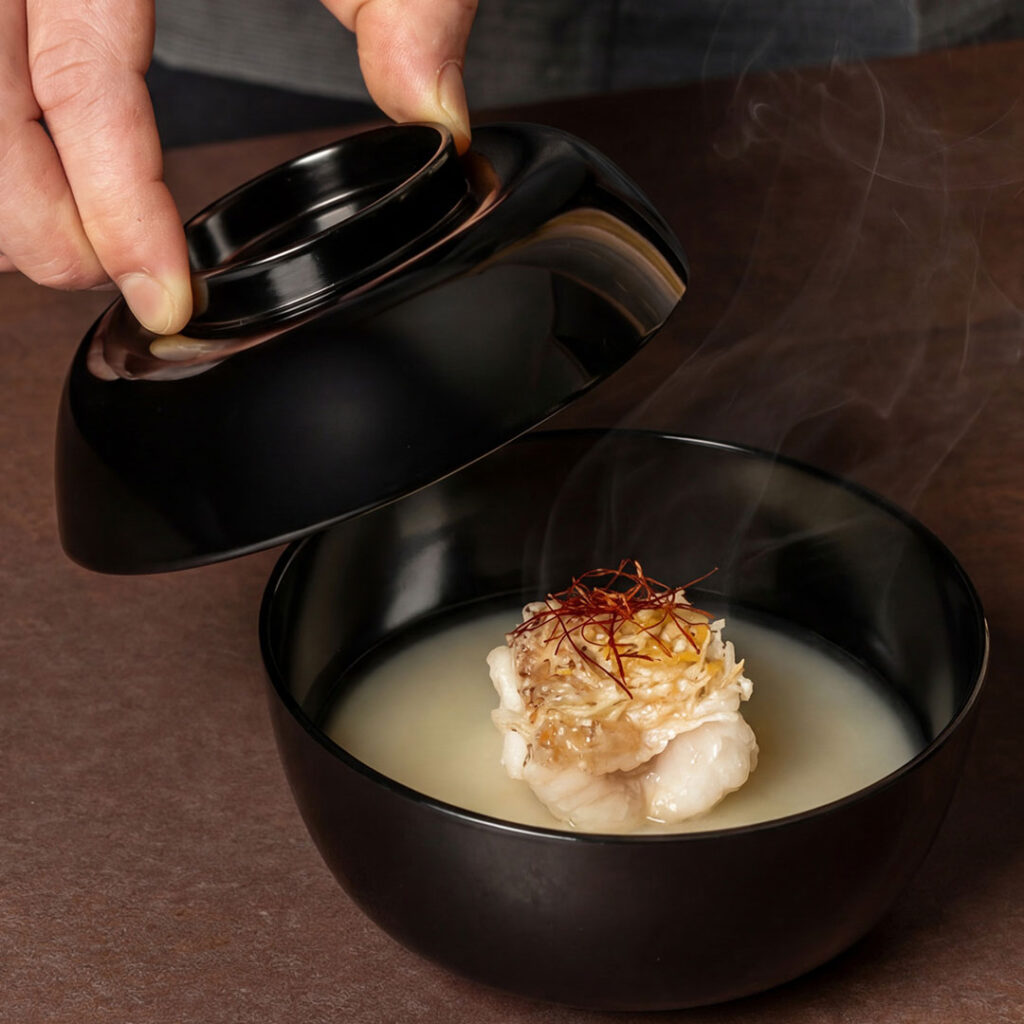 Available exclusively within the $388++ menu, one of Head Chef Sakamoto Mitsutaka’s personal highlights is a seasonal Soup of Amadai (tilefish) and nanohana, served in a gently savoury broth layered with seafood essence and white miso. Quietly expressive and deeply comforting, the dish reflects Chef Sakamoto’s ryokan-honed sensibility — where warmth, balance, and restraint come together in a single bowl.