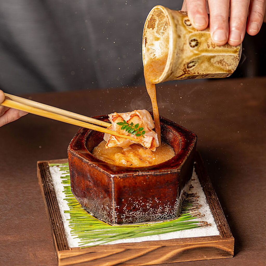 While Chef Sakamoto commands the counter, Sous Chef Matsuda anchors the hot kitchen—overseeing the grilled dishes and the signature Ise Ebi (Japanese spiny lobster) hot pot that have become integral to the dining experience. His four decades of experience, including a Michelin starred tenure at Ryotei Wataya and leadership roles across Japan’s most prestigious luxury inns, ensure that every element from the back kitchen complements the rhythm of the counter service. Together, Sakamoto and Matsuda create a seamless dining experience — a quiet synergy where the counter and the kitchen move as one.
