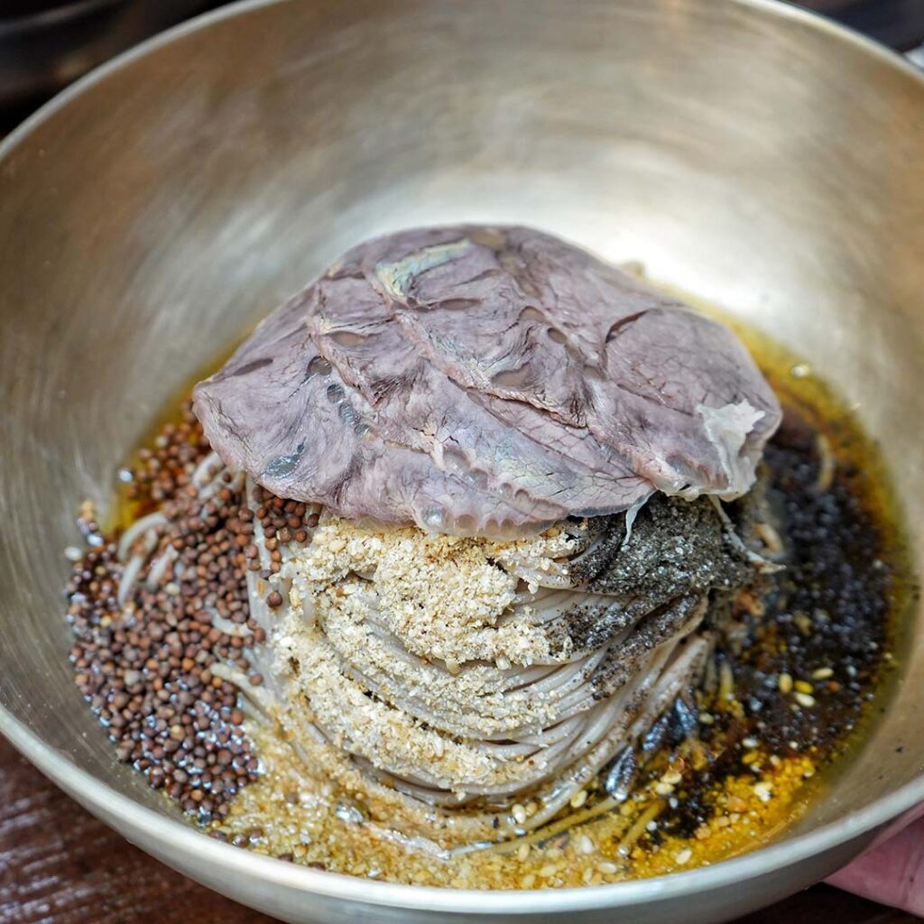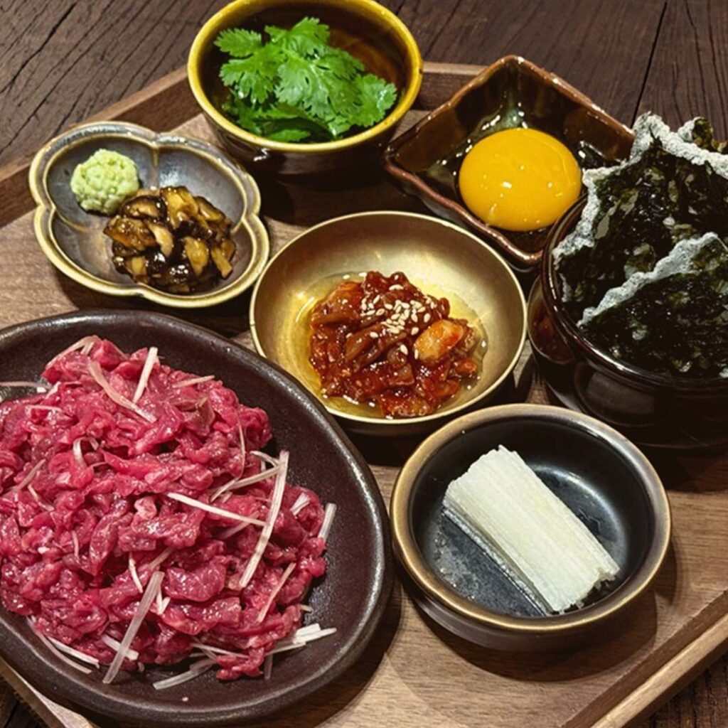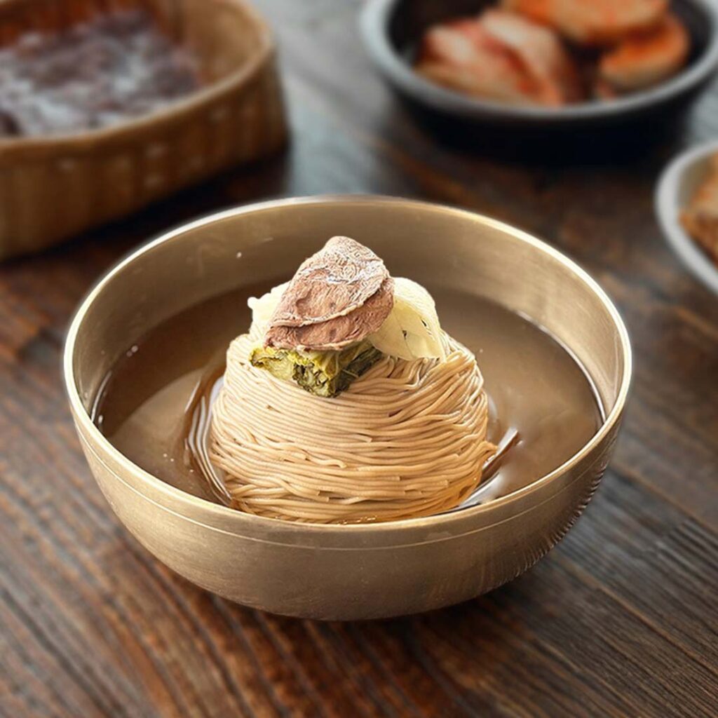 By day, Joong San leans into comforting Korean classics done with care. Expect freshly made sundubu jjigae served with nangpun bapsang—a thoughtful spread of rice, bean sprouts and seasoned laver meant to be mixed and shared—alongside crispy mung bean pancakes and fragrant soon memilguksu, where bouncy buckwheat noodles are layered with perilla oil and powder for a nutty, savoury finish. Each dish reflects the brand’s belief in honest cooking and the warmth of everyday Korean meals.