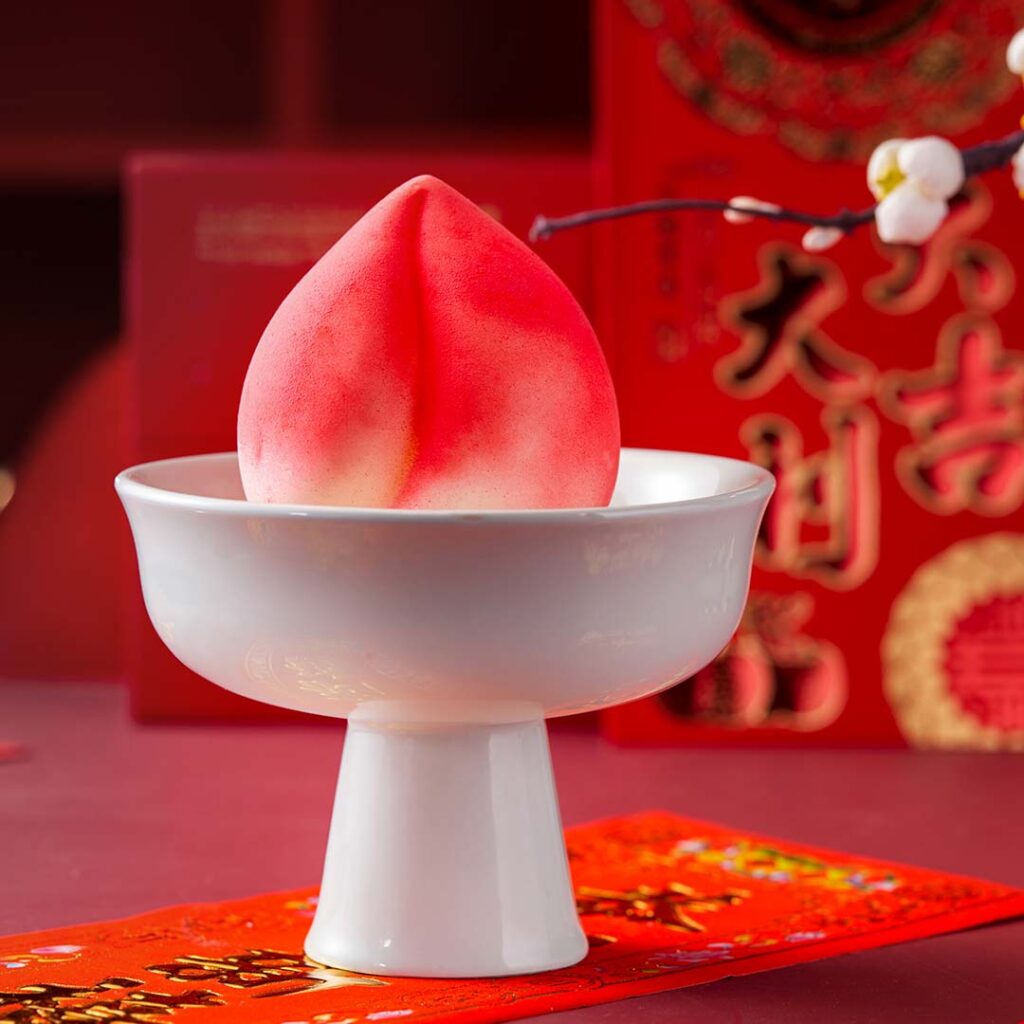 Sitting cutely on its own pedestal is the Lucky Peach Milk Pudding 转运仙桃 ($7.90), a blushing beauty that tastes as yummy as it looks. The unassuming dessert surprises diners with a creamy milk pudding centre, after cracking the rosy peach outer layer. This, too, has its own symbolism. In China, the peach alludes to longevity, immortality, and health, originating from the mythical peaches that grant eternal life. It also represents love and marriage due to peach blossoms being tied to spring and happiness, as well as good fortune and luck.