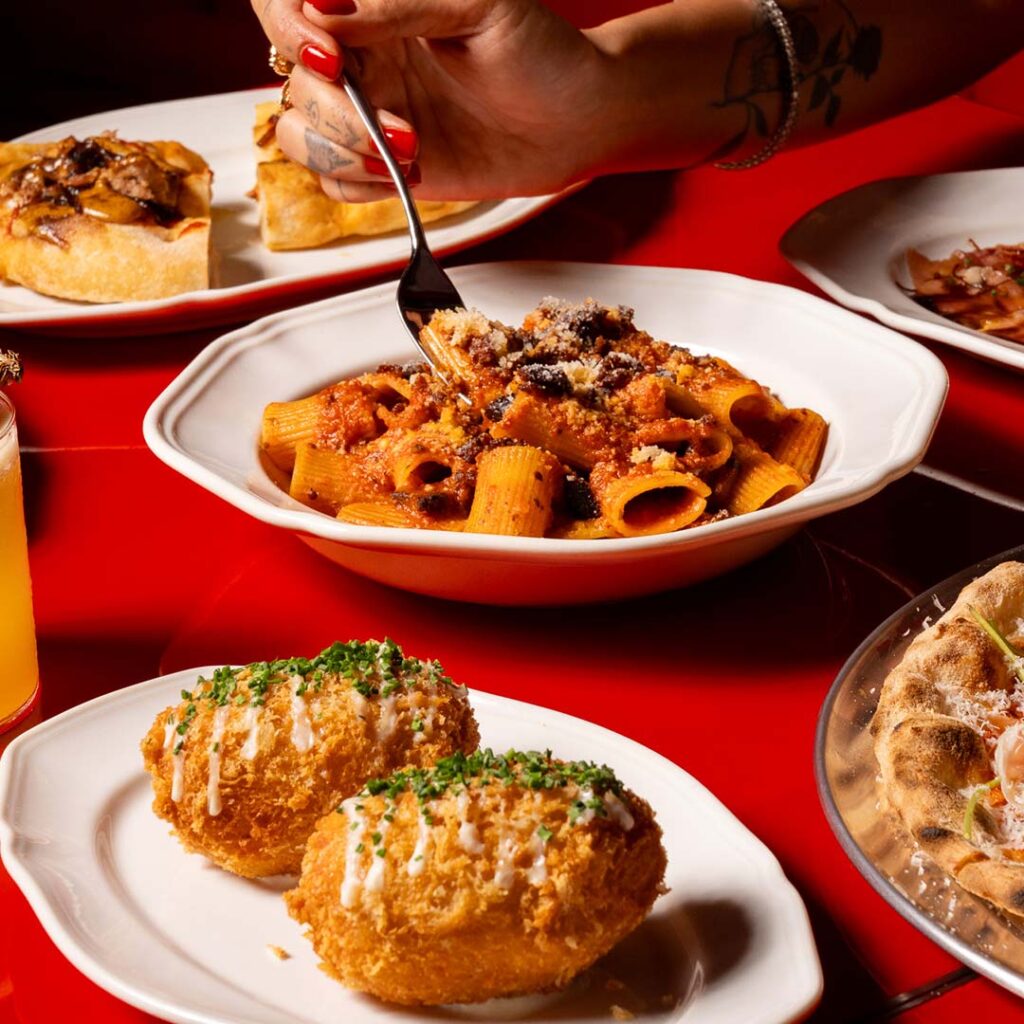 In the kitchen, an all-Roman team leads the charge, helmed by Head Chef Federico Scordo alongside dough master Giorgio Sorce. The menu opens with comforting starters like fluffy house-made focaccetta paired with pecorino and signature dips, and crisp supplì al telefono with molten cheese centres. Pasta takes centre stage — from the elegant simplicity of fettuccine with butter and Pecorino Romano, to bolder interpretations like caserecce that playfully blur the lines between carbonara, amatriciana, and cacio e pepe.