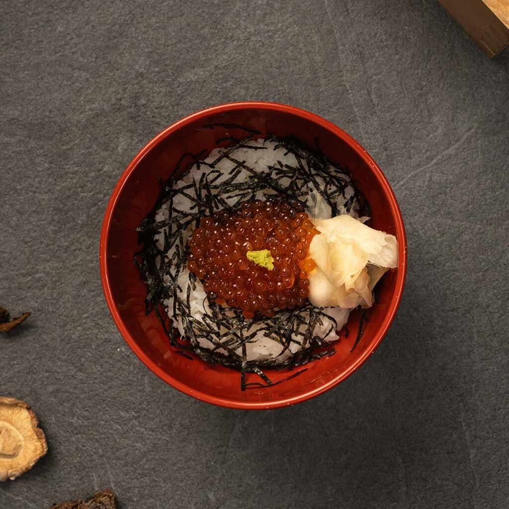 ● Ikura Rice Bowl, S$12.80 3 Fresh, succulent pearls of shoyu-marinated ikura, green onions, nori, and wasabi on Hokkaido Nanatsuboshi rice. Completed with pickled ginger for a bright finish.