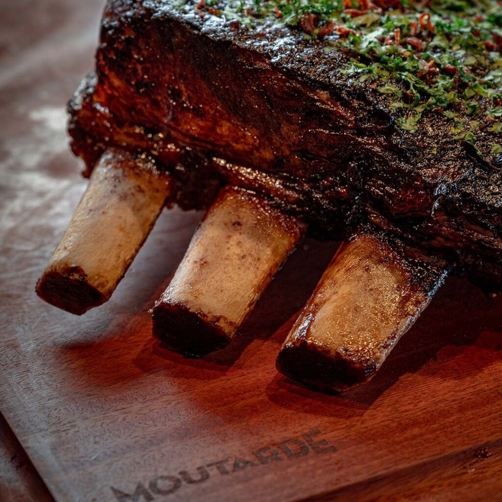 Undeniably, the centre-piece and beating heart of Moutarde’s dining experience will be its live carvery station – a mouthwatering and captivating spectacle where whole wood-fire roasted cuts are sliced with precision and flair. Drawing from a formative early 1990s London memory of the classic British carving trolley, Chef Paul is composing at Moutarde his own unique version of this quintessential dining concept, and debuts it here in Singapore.