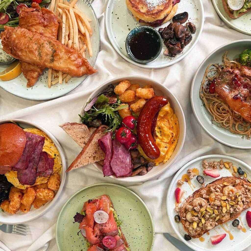 The menu is wide-ranging, starting with breakfast plates such as the Wunder Breakfast, Pancake Stack, and Smoked Salmon Avocado Toasties, alongside heartier mains like Fish and Chips, Grilled Bratwurst with Chips, Smoked Duck Carbonara, and the Mentaiko Chicken Katsu Burger. Burgers, pastas, and toasties round out the savoury offerings, creating plenty of options for brunch, lunch, or dinner.