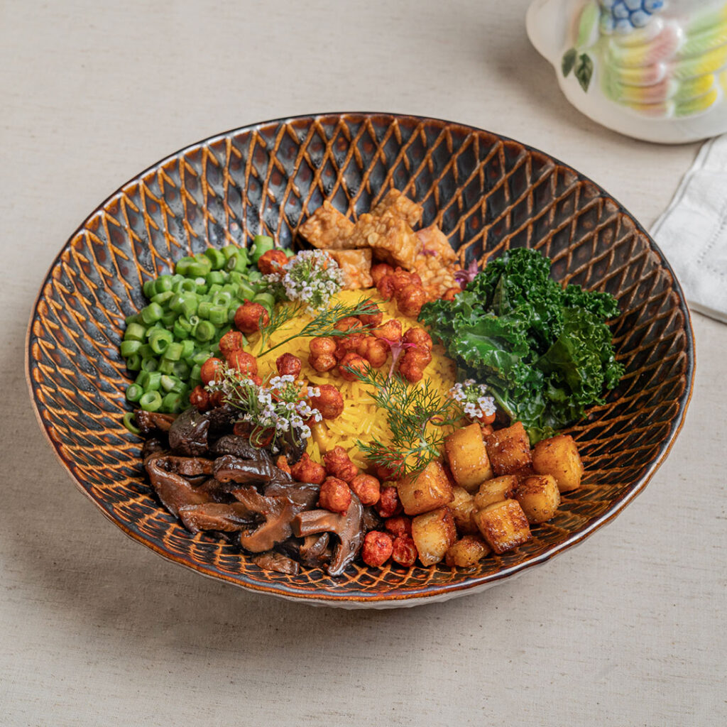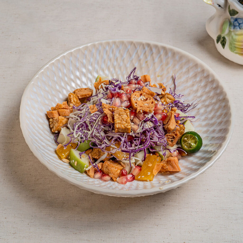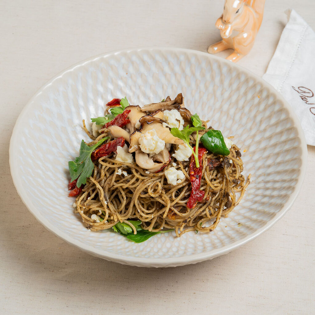 Main plates range from the Tamarind Hot Honey Chicken Burger ($26) with mango slaw and tamarind tomato jam, to Spiced Fish & Chips ($28) featuring curry beer-battered fish and amchoor fries, and the Asian Tuna Tartine ($24) with tuna & cincalok mayo, sourdough, mozzarella, ginger flower, sambal mayo and jammy egg. Vegetarian offerings include the Botanical Bowl ($24) with turmeric cashew golden rice; the “Rojak” Salad ($22) with caramelised pineapple, shredded cabbage, cucumber, apple, crispy fritters, tempeh, rojak dressing, ginger flower, and peanut sesame crumb while the Woodland Pesto ($24) is a robust pasta dish with maitake mushrooms and olive pesto.