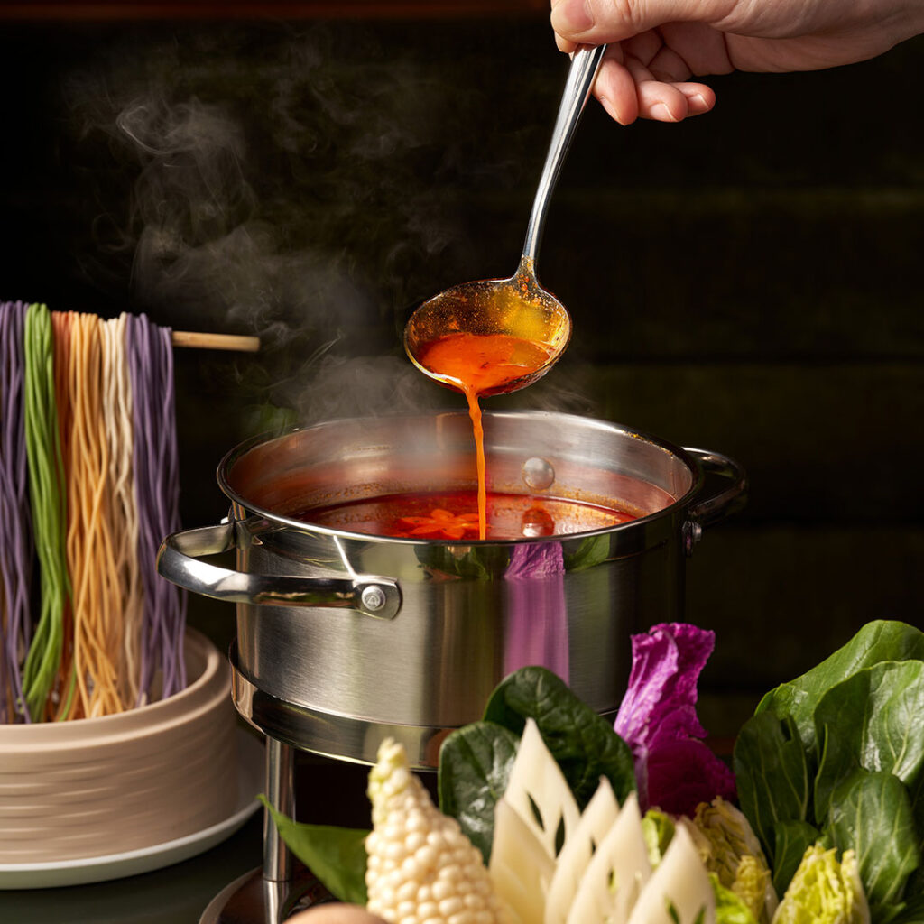 Inspired by the Chinese philosophy of the Five Elements of flavour – sour, sweet, bitter, spicy, and salty – QUAN’s culinary approach celebrates balance in every bowl. Each broth and ingredient is thoughtfully curated to complement one another, creating a rich and nuanced hotpot experience that feels both comforting and refined.