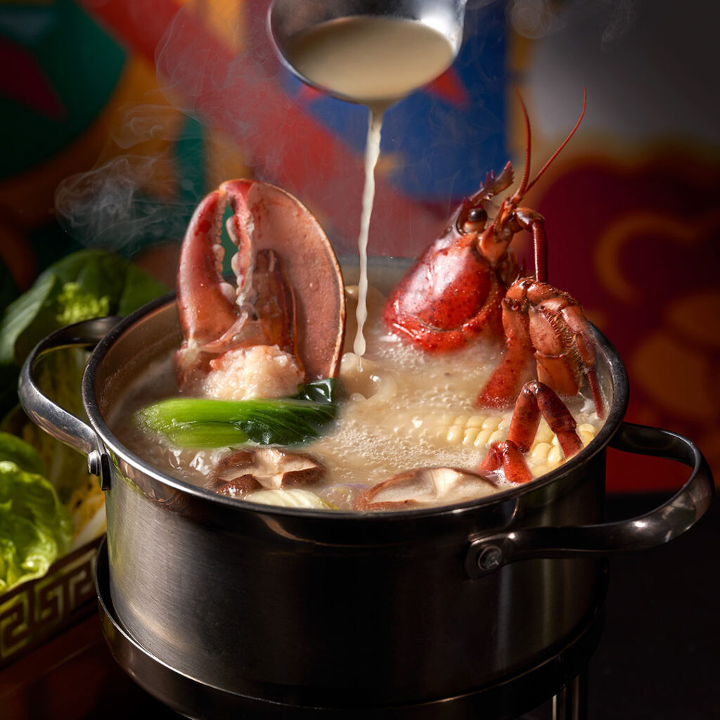 Complementing these broths is a diverse selection of premium ingredients. Guests can enjoy meats such as Australian Wagyu beef and Iberico pork, alongside fresh seafood including live Boston lobsters, Korean abalone, and tiger prawns, as well as seasonal vegetables and locally sourced produce.