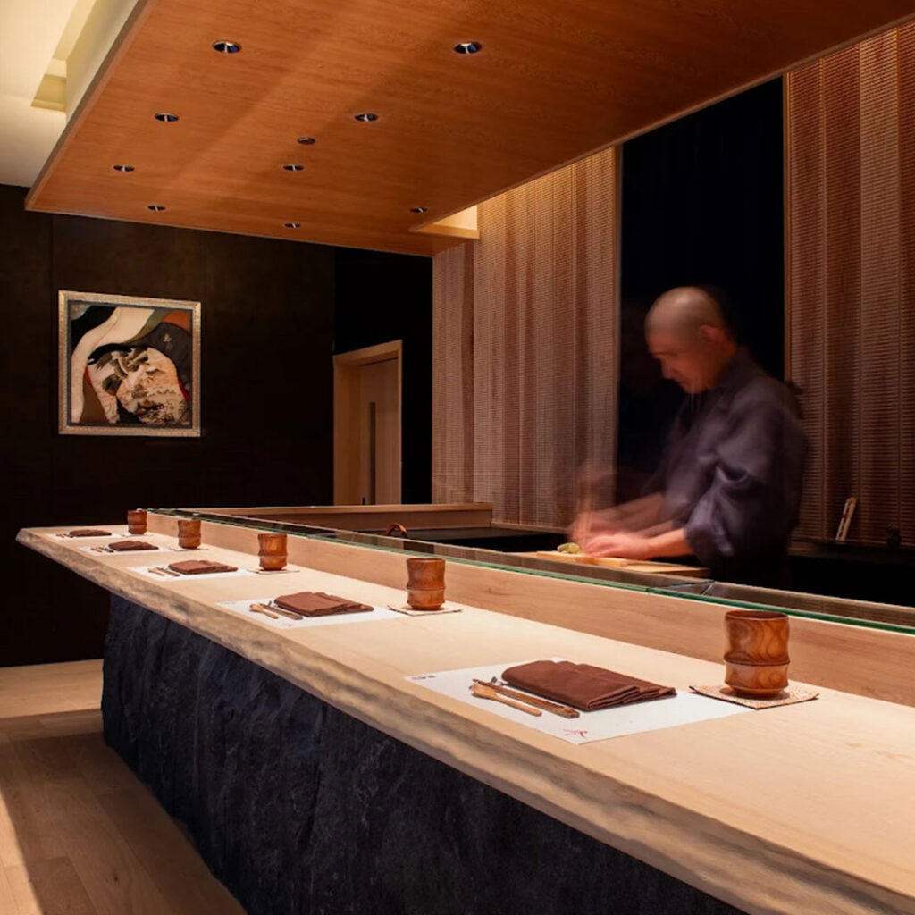 What sets the experience apart is its warmth. Instead of the usual hushed, formal atmosphere, Chef Tomoo keeps the room engaging — answering questions, sharing insights on ingredients, and creating a more relaxed, conversational flow. The meal revolves around a sequence of 10 meticulously crafted sushi pieces, each presented on a glass counter with a mirrored underside, allowing diners to appreciate the details from every angle.