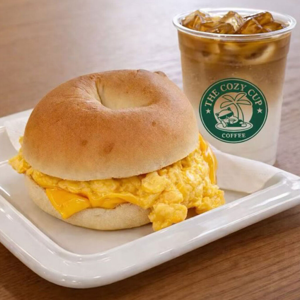 The menu centres on house-made bagels and desserts, striking a balance between indulgent and comforting. Sweet options range from Chocolate Lava to Nutella Banana, while savoury picks like Tuna and Chicken Avocado offer something more substantial. Regulars gravitate towards the iced osmanthus mousse latte for a fragrant twist on their caffeine fix, while the burnt cheese cake — a lava-style Basque — has quickly become a crowd favourite.