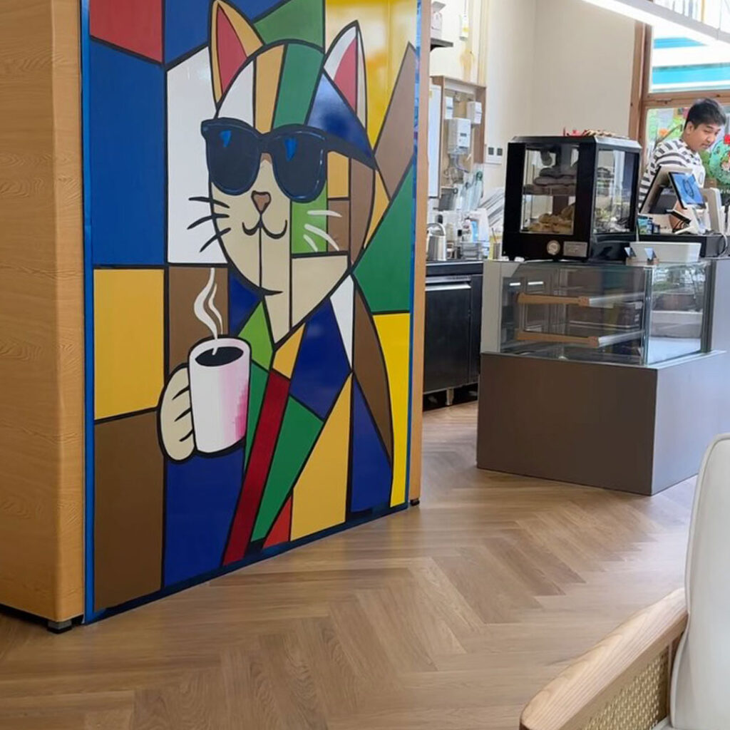 The Cozy Cup Coffee began as a humble home-based takeaway in Keat Hong before finding a physical home at Kreta Ayer, just a short walk from the bustle of Chinatown. Slightly tucked away from the main stretch, the café rewards those who seek it out with a relaxed, easygoing atmosphere. A colourful mural of a sunglasses-wearing cat clutching a coffee cup sets the tone — playful, unpretentious, and quietly confident.