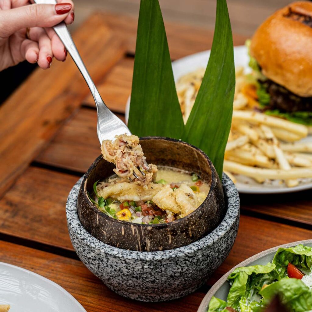 Terracotta accents and oceanic blues set the scene for long, leisurely afternoons. Guests can lounge on sunbeds or settle into the shaded dining area while sampling Southeast Asian-inspired bites, all framed by lush greenery and sweeping rooftop views. From signature plates like The ROOF Chicken Rice to East Coast Baja Tacos, each dish is crafted to suit both casual nibbling and full-on feasting.