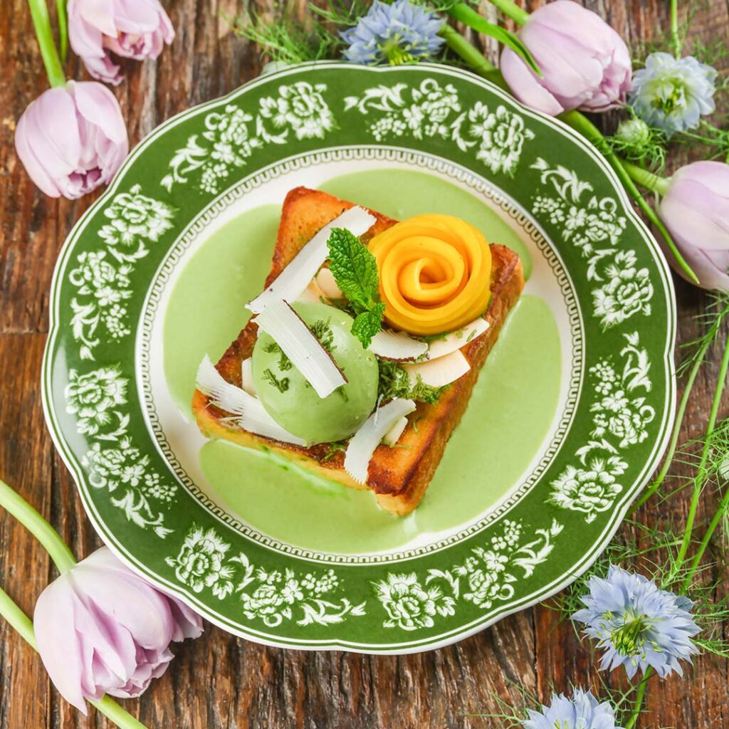 From the bright and nourishing vegetarian Roasted Beetroot & Quinoa Salad ($20), to the delicately tangy Citrus-Infused Hokkaido Scallop Tartare ($28), and the Pandan Cream French Toast with Ice Cream & Mango Blossom ($14), each dish showcases the brand’s deep understanding of fusion cuisine. For a palate cleanser, the iced Ambarella & Green Apple Citrus Splash ($14) bursts with sweet and sour fruitiness, offering the perfect finale.