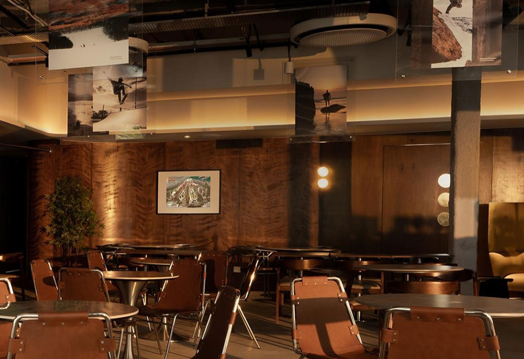 The space extends beyond dining, doubling as a cultural hangout. A Leica-curated gallery lines the walls, showcasing evocative images that capture the spirit of surf and snow. Each photograph recalls past adventures and inspires new ones, underscoring the lounge’s role as a place to reconnect, reflect, and recharge.