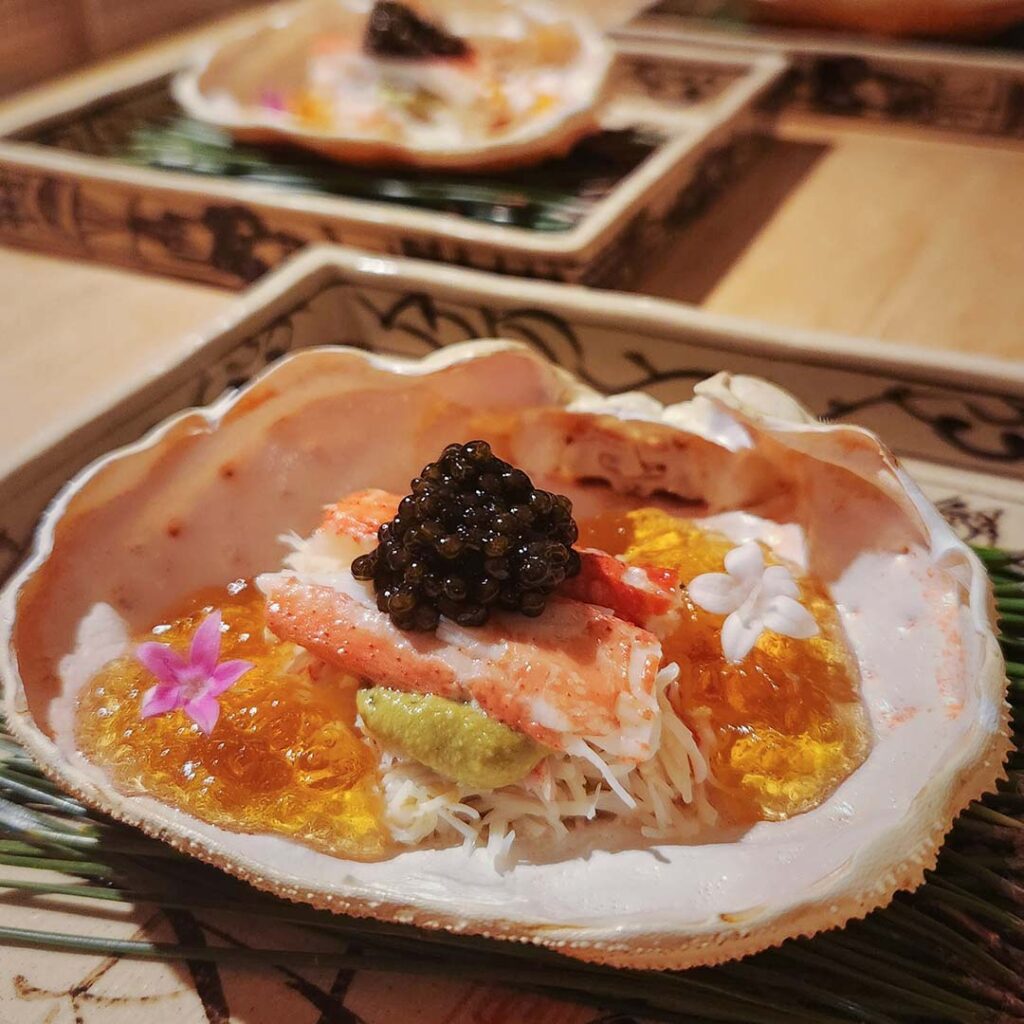 With over 25 years of mastery in the art of kaiseki, Chef Kawasaki blends time-honoured Japanese techniques with modern creativity, crafting dishes that honour the integrity of each ingredient and the season’s finest flavours. The kappo-style restaurant offers an intimate 8-seat counter and two private dining rooms, creating a discreet and serene setting within Shaw Centre.
