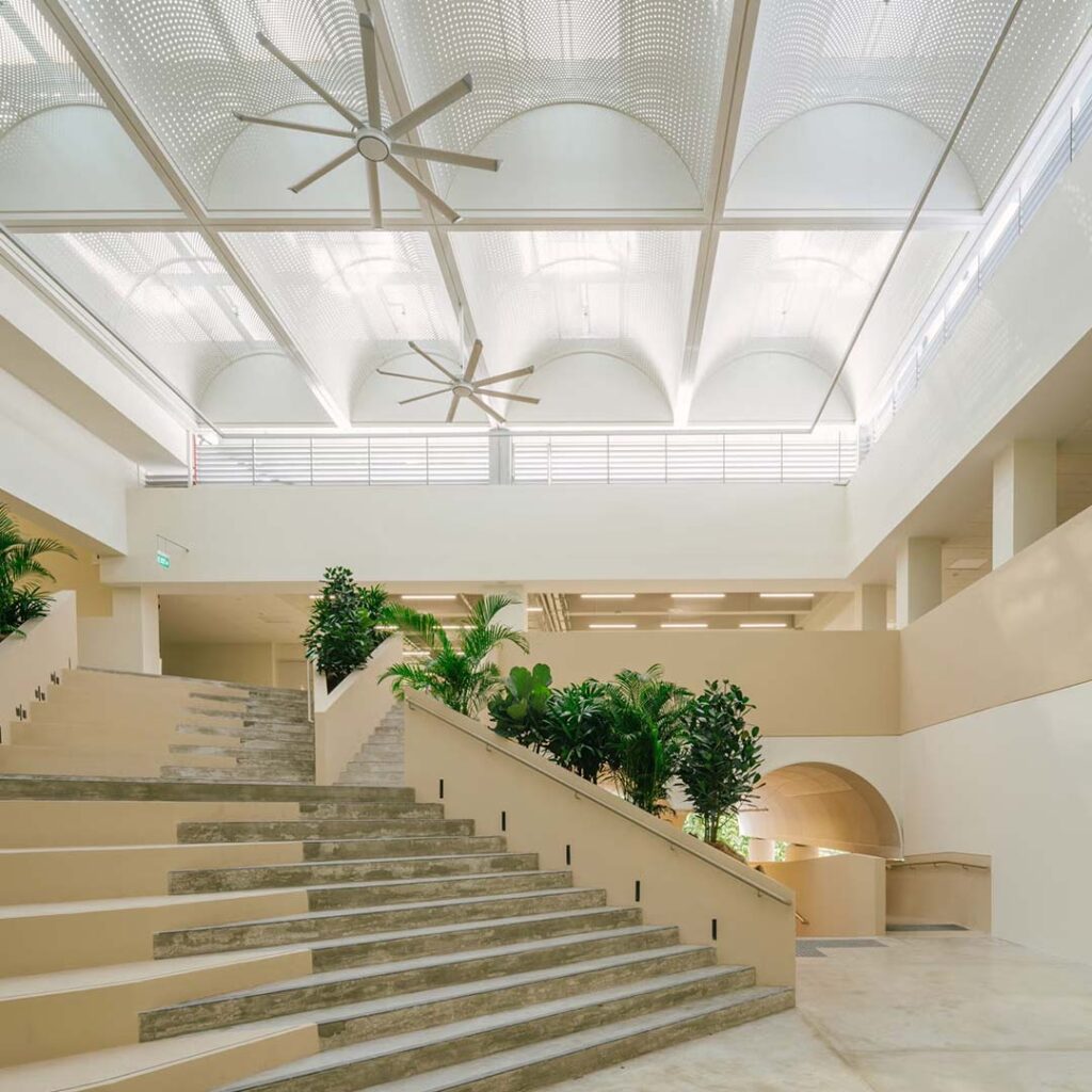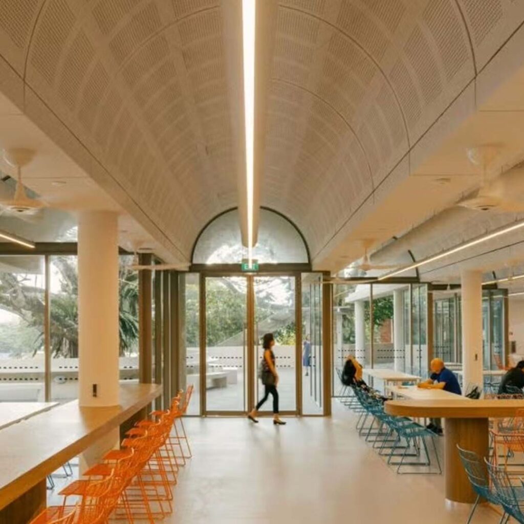 The National University of Singapore’s Yusof Ishak House has reopened after a three-year transformation into a sustainable, student-centric hub. Originally built in 1977, the building retains much of its architectural heritage—including its signature arches and staircases—while integrating modern eco-friendly features aimed at achieving net-zero energy use. Hybrid cooling systems, rooftop solar panels, and improved energy efficiency are expected to cut annual energy consumption by over 1 gigawatt-hour.