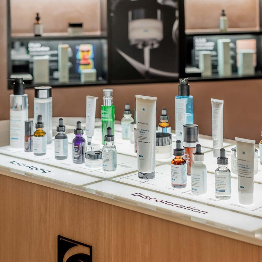 An interactive skin analysis bar powered by SkinCeuticals invites guests to explore their skin’s unique needs through advanced diagnostic tools. At the Skincare Bar, clients can experience both the SkinCeuticals and SSKINS products, encouraging discovery of formulations tailored for different lifestyles and concerns.