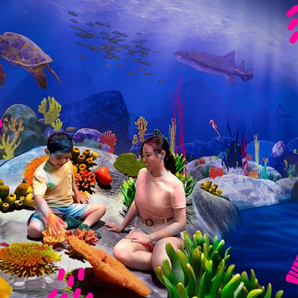 The playscape is modelled after real ecosystems – Wetlands, Forestlands, Grasslands and Drylands – each featuring crawl-through passages, climbable structures, soft play elements and interactive projections. Highlights include the Reef Retreat’s surprise-triggering coral displays, a 360-degree Microscopic Canopy, trampoline waterlilies, and large-scale features such as a six-metre Orangutan Sleeping Platform and the 27-metre Giant Snake Belly. Hidden tunnels, sensory touchpoints, and projected wildlife encounters add to the experience, inviting children to explore every corner.