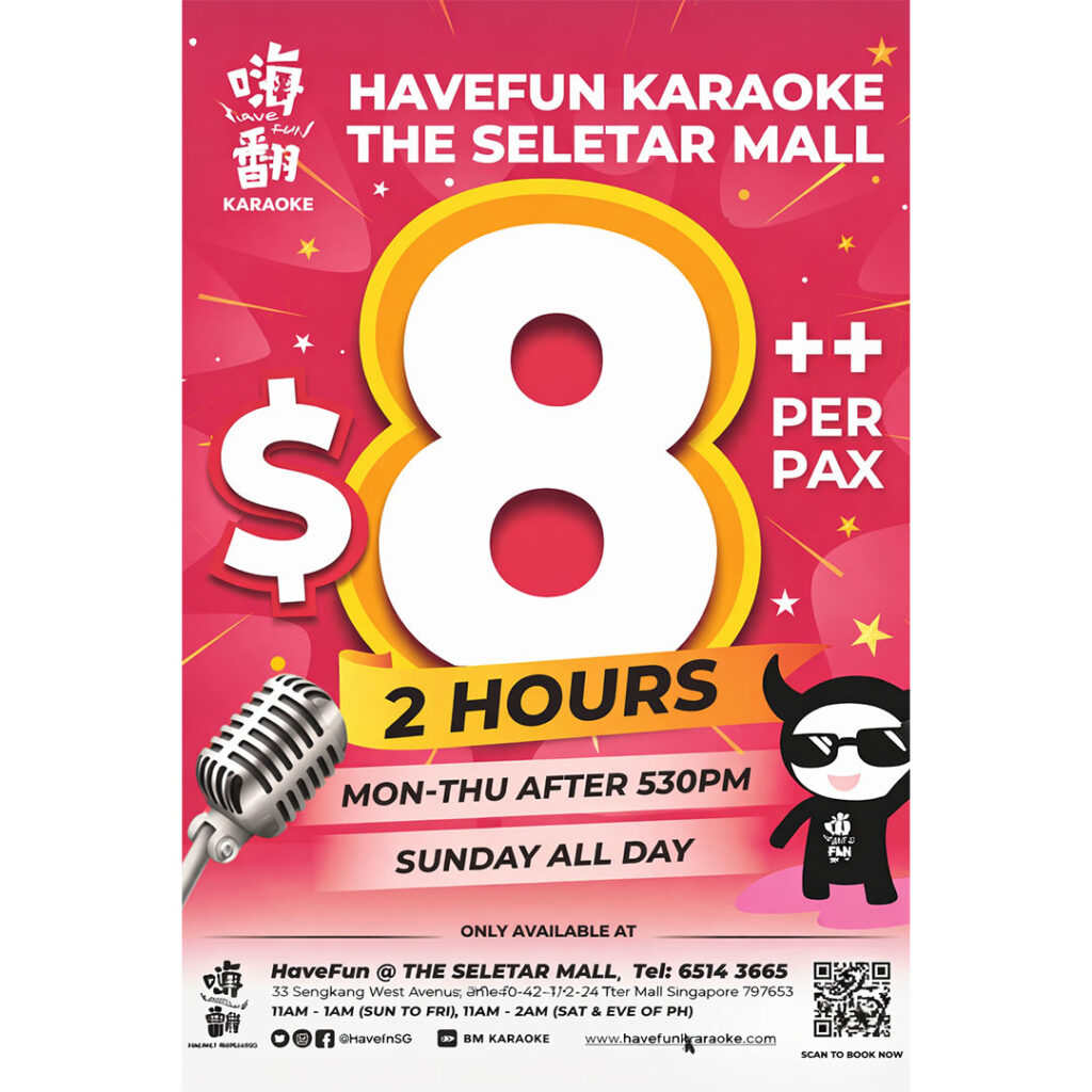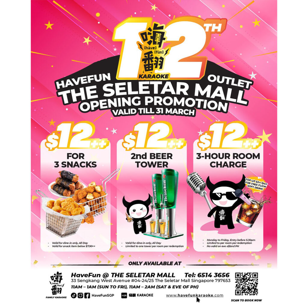 To mark the opening of the new outlet, HaveFun Karaoke is offering exciting opening promotions to fellow Seletarians, available for a limited time until 31 March 2026: