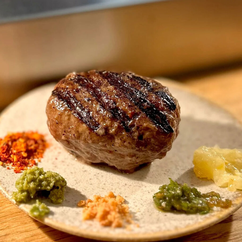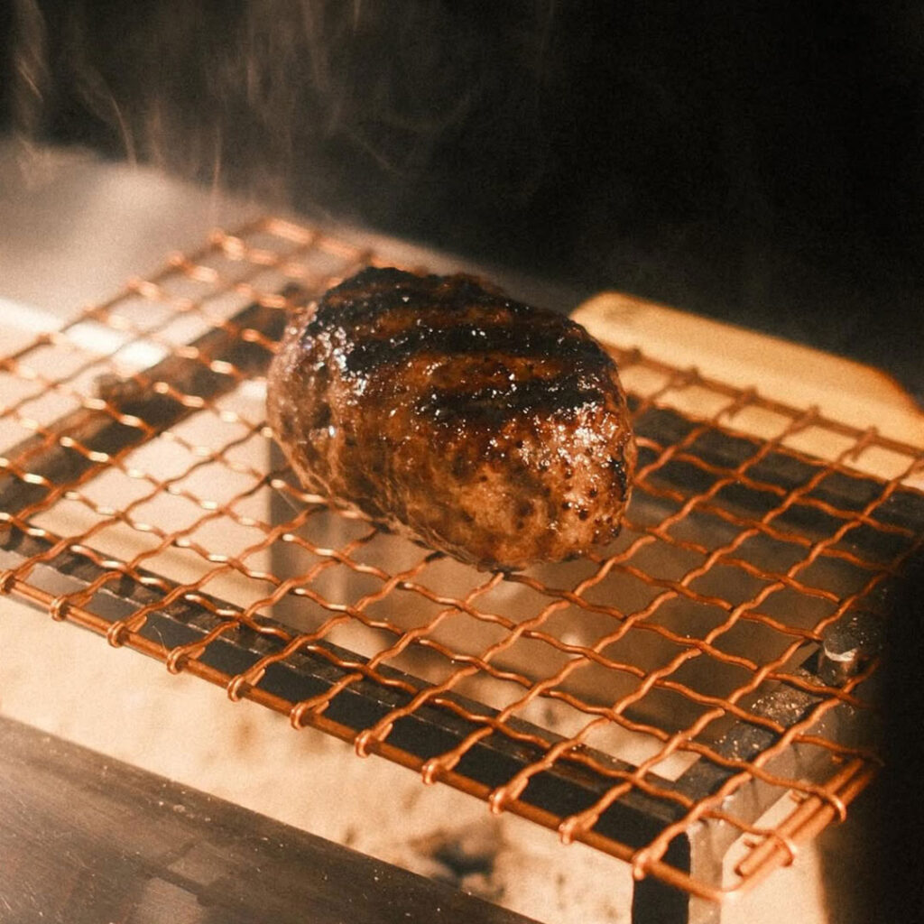 Hikiniku to Come is best known for serving freshly ground beef patties grilled over charcoal and brought to the table straight from the fire. Each portion is cooked to order before being served on a hot plate, allowing diners to finish the cooking themselves for the ideal texture. The hamburg is typically paired with rice, soup, pickles, and a selection of condiments, keeping the meal simple but precise, with the emphasis placed on the quality of the meat and the timing of the grill. The format has become the brand’s signature, combining the feel of a set meal with the theatre of live cooking.
