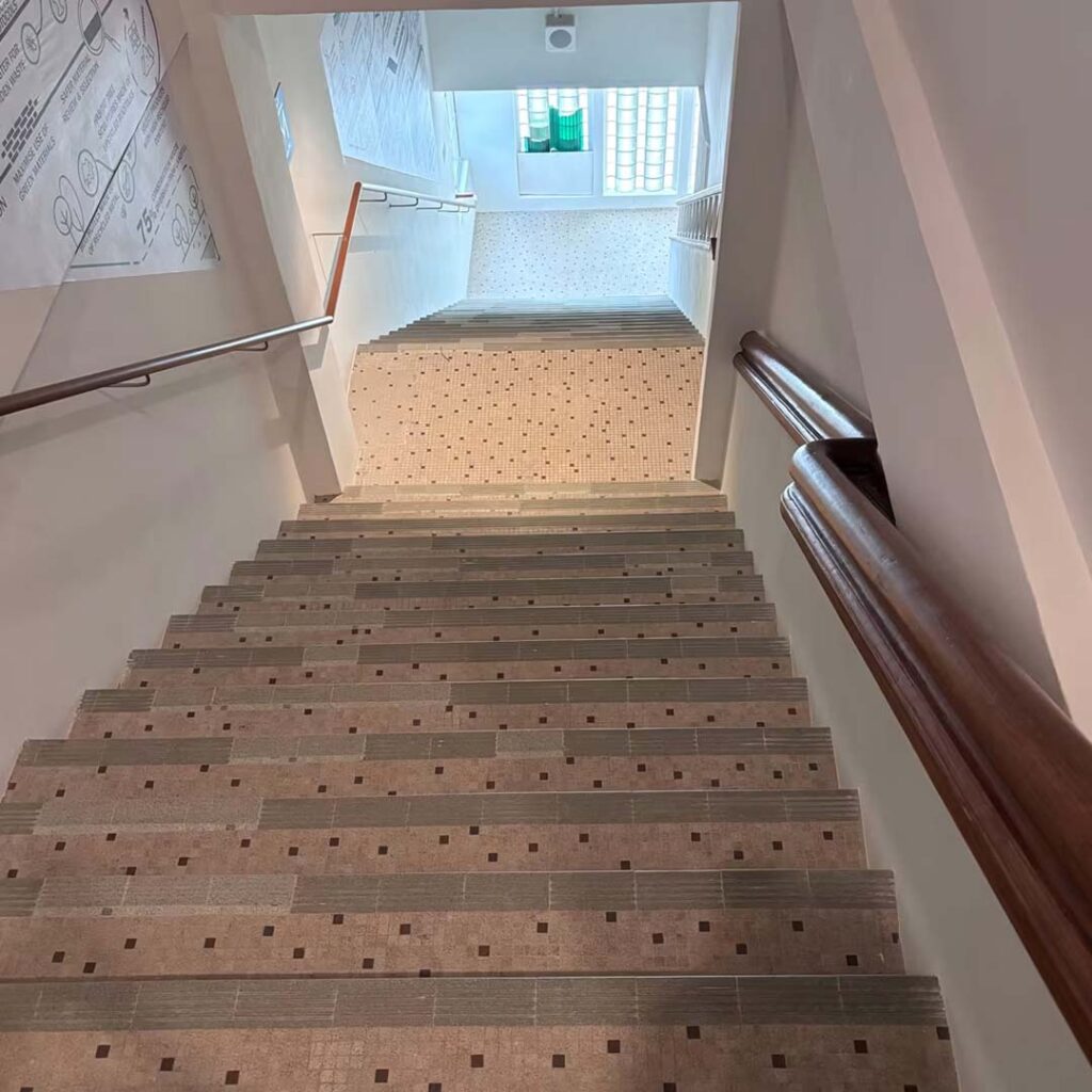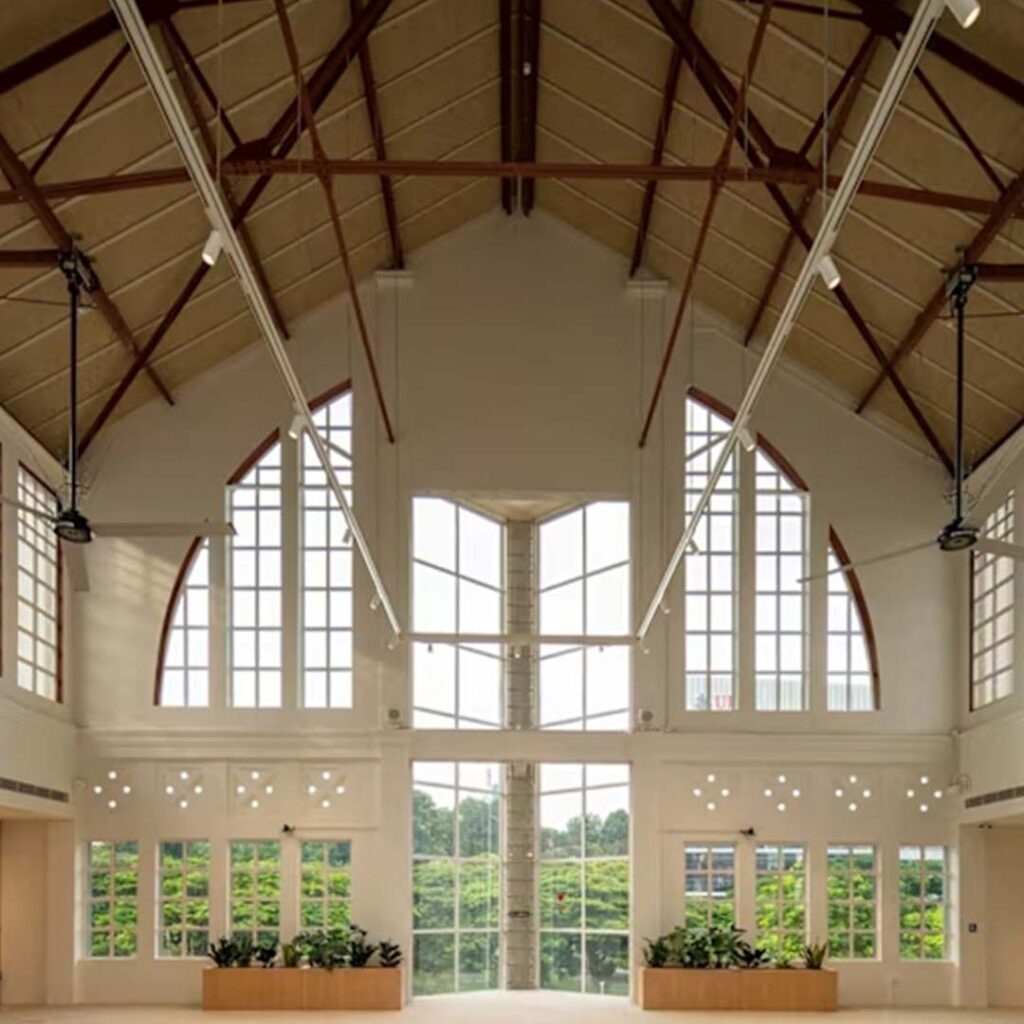 Today, the expanded Temasek Shophouse spans about 68,000 square feet and serves as a social impact hub housing Temasek Trust and a mix of community-driven spaces. Led by Surbana Jurong with conservation consultancy by Studio Lapis, the restoration followed principles of maximum retention and minimum intervention, ensuring each building’s distinct character remained intact. Architectural styles range from Early Modern and Art Deco to Neo-Classical and Indo-Saracenic, reflecting Orchard Road’s cosmopolitan past. Inside, original mosaics, plasterwork and structural quirks were carefully integrated into a cohesive layout, connected by discreet walkways, ramps and shared corridors designed to balance accessibility with conservation integrity.