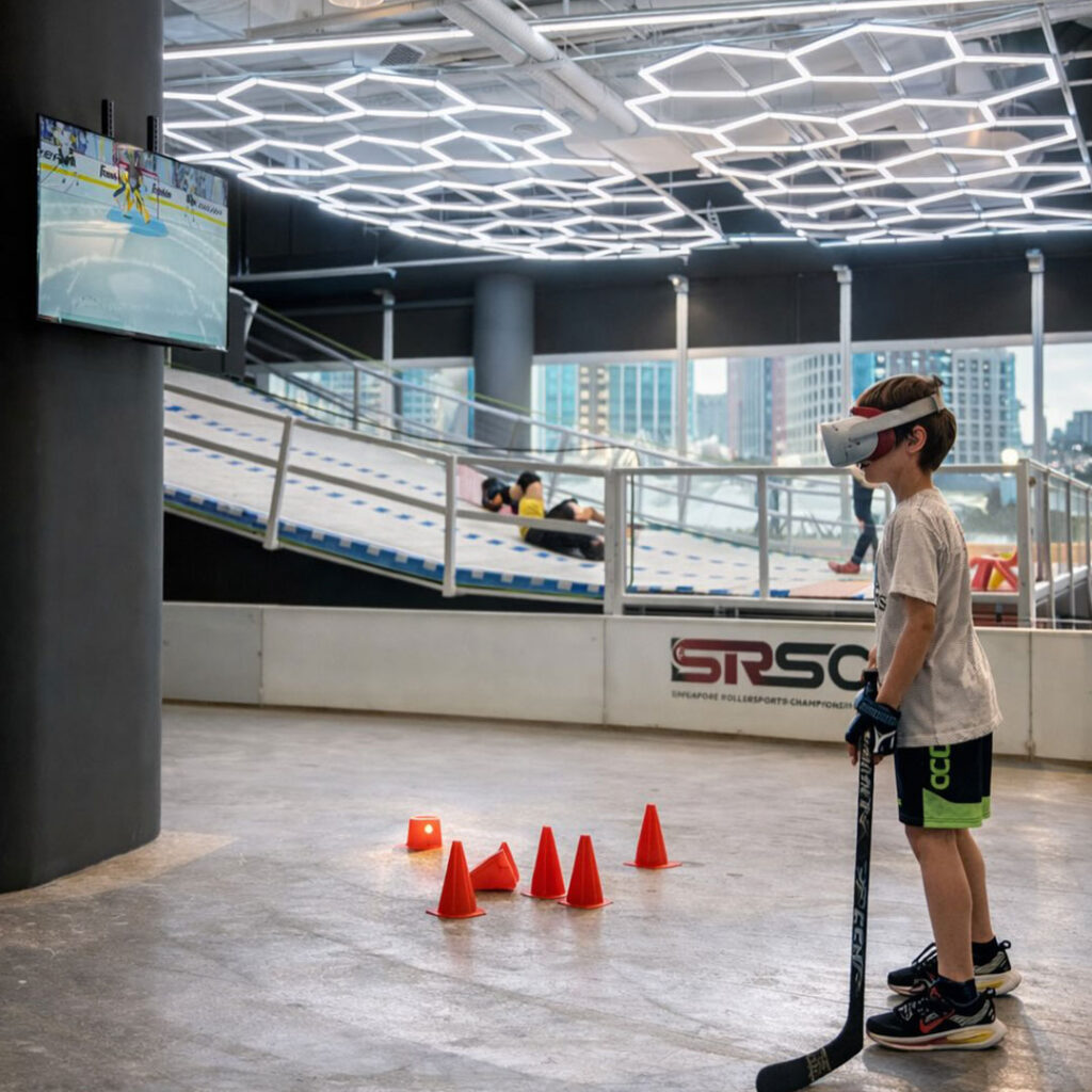 At the heart of Ice Penguin is a 1,000-square-foot synthetic ice rink — a more forgiving surface that mimics the glide of real ice while offering extra reassurance for those taking their first steps. The space is designed around a “foundations first” approach, making it suitable for young children, teens and adults who are new to skating. Beyond the rink, Ice Penguin expands into a broader winter sports playground, featuring ski and snowboard simulators for balance training, as well as VR-assisted tools that help users improve coordination and spatial awareness.