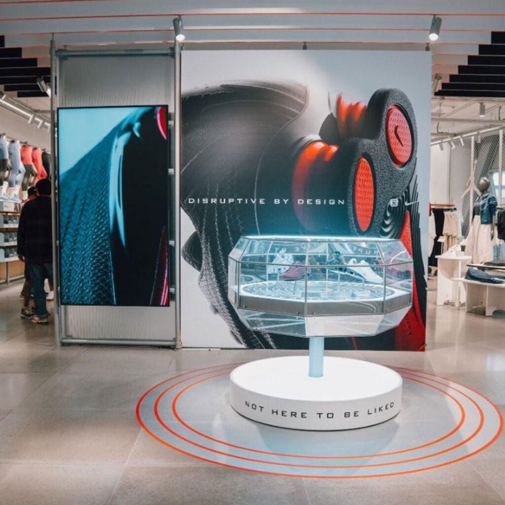Inside, the layout is clean and intuitive, making it easy to explore a wide range of footwear and apparel across Running, Training, Sportswear, Jordan, and Kids collections. The first floor is dedicated to women’s and kids’ selections, featuring everything from casual athleisure to performance-driven footwear designed for daily wear and active lifestyles. Upstairs, men’s apparel and footwear take centre stage, complemented by striking visuals and a large LED wall that adds a dynamic, almost gallery-like feel to the space.