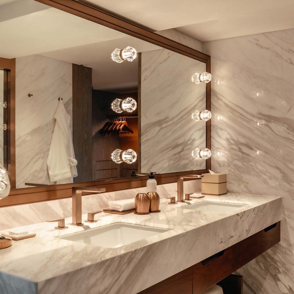 Sustainability is deeply ingrained in the interior design through the adaptive reuse of artworks and high-durability materials intended to stand the test of time. Throughout the multi-year transformation, no effort was spared to ensure responsible upcycling of materials from the original design and introduction of eco-conscious technologies.